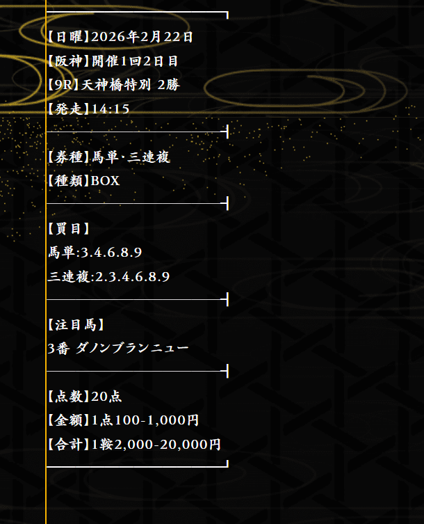 無料情報2発2的中でした、配当も22万8300円と申し分なし!